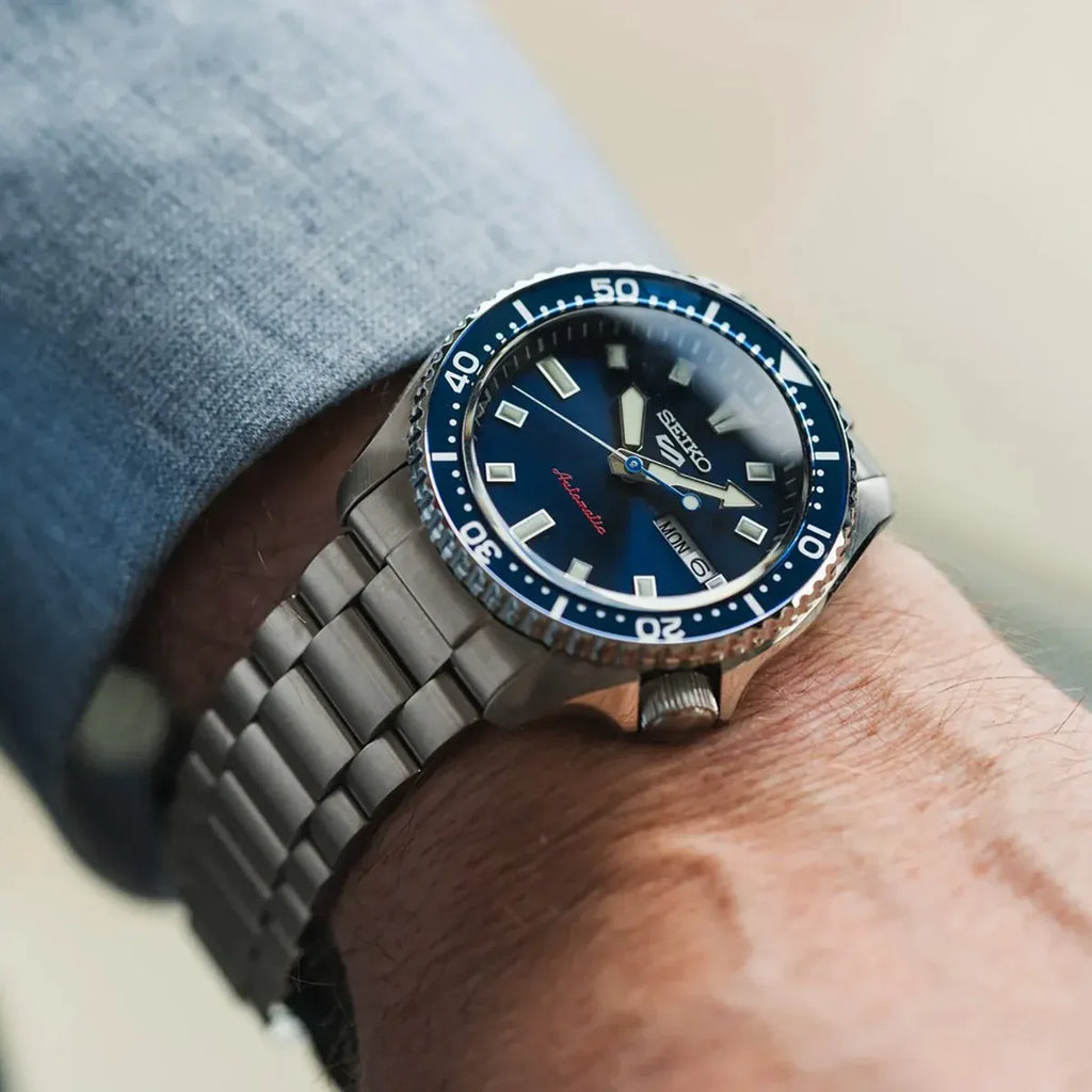 Seiko 5 Sports SKX Automatic Blue Dial Silver Steel Strap Watch for Men - SRPL83K1