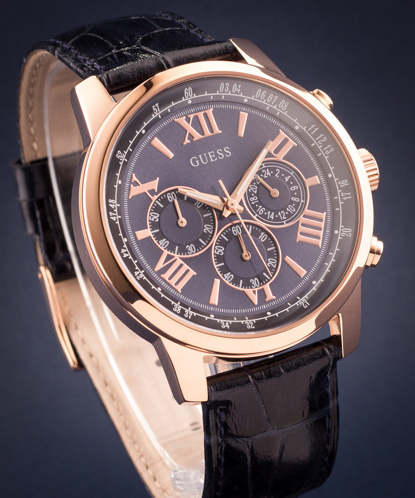 Guess Horizon Chronograph Blue Dial Blue Leather Strap Watch For Men - W0380G5