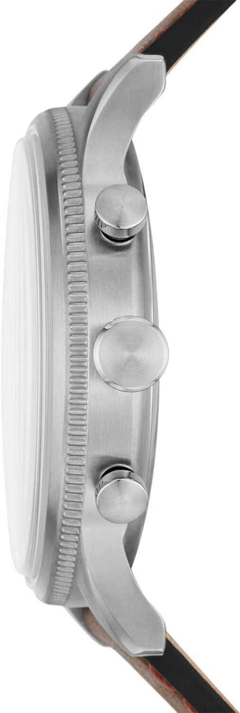 With an ultra-appealing look and uncompromising finish, this timeless rendition from the House of Fossil asserts minimalism with the right amount of luxury. With a black matte dial implicative of a starry night sky, this 44mm Pilot timepiece expresses its vigorous spirits through the strength of modern materials and chronograph functions which record time with greatest accuracy.