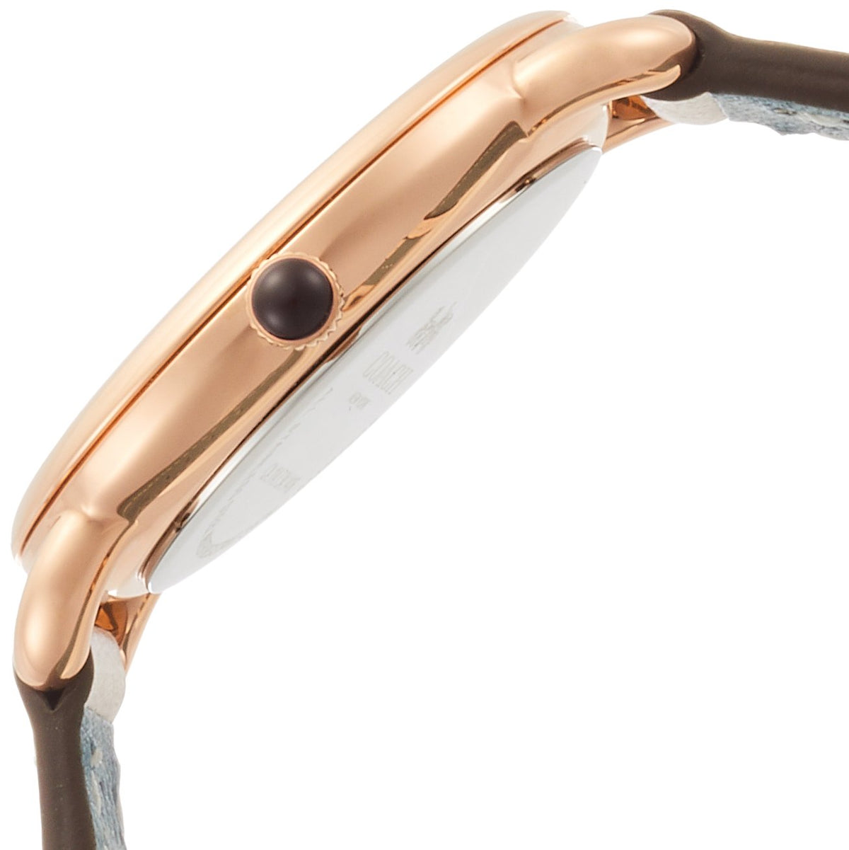 Rose gold-tone stainless steel case with a white leather strap. Fixed rose gold-tone bezel. White dial with rose gold-tone skeleton hands and index hour markers. Arabic numerals mark the 3, 6, 9 and 12 o'clock positions. Dial Type: Analog. Quartz movement. Scratch resistant mineral crystal. Pull / push crown.