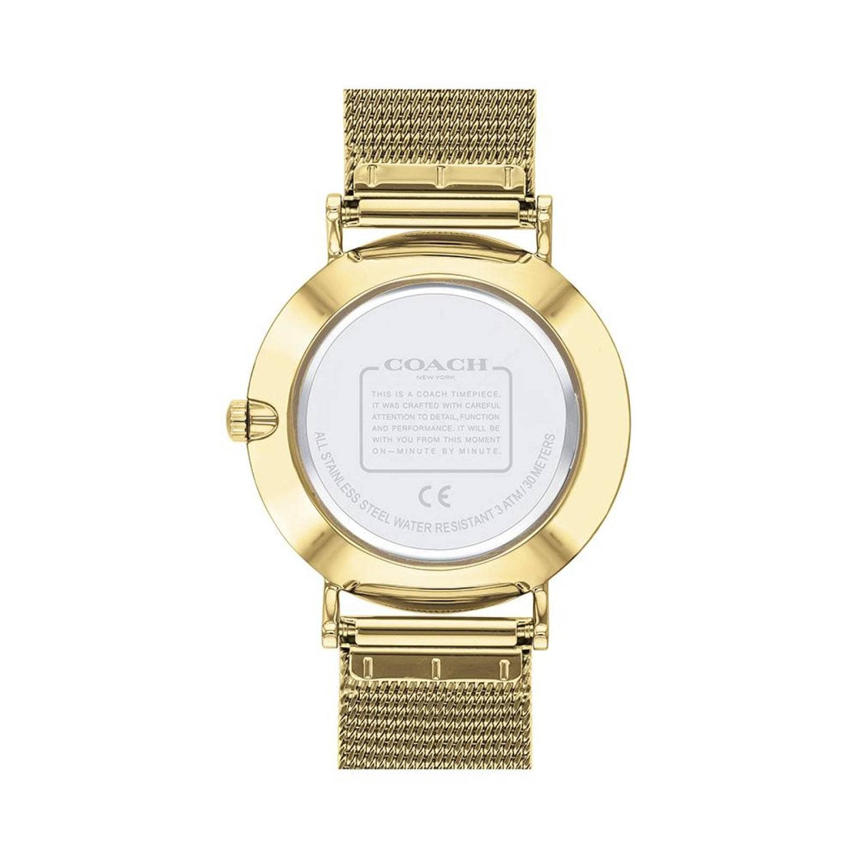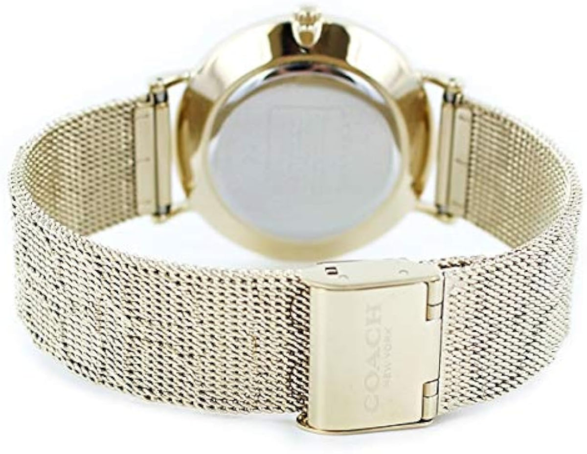 This Coach Perry watch for women is a timeless piece with a gold dial and mesh bracelet. Its sophisticated design offers both style and comfort, making it the perfect accessory for any occasion. Crafted with precision and quality, this watch is a must-have addition to any watch collection.