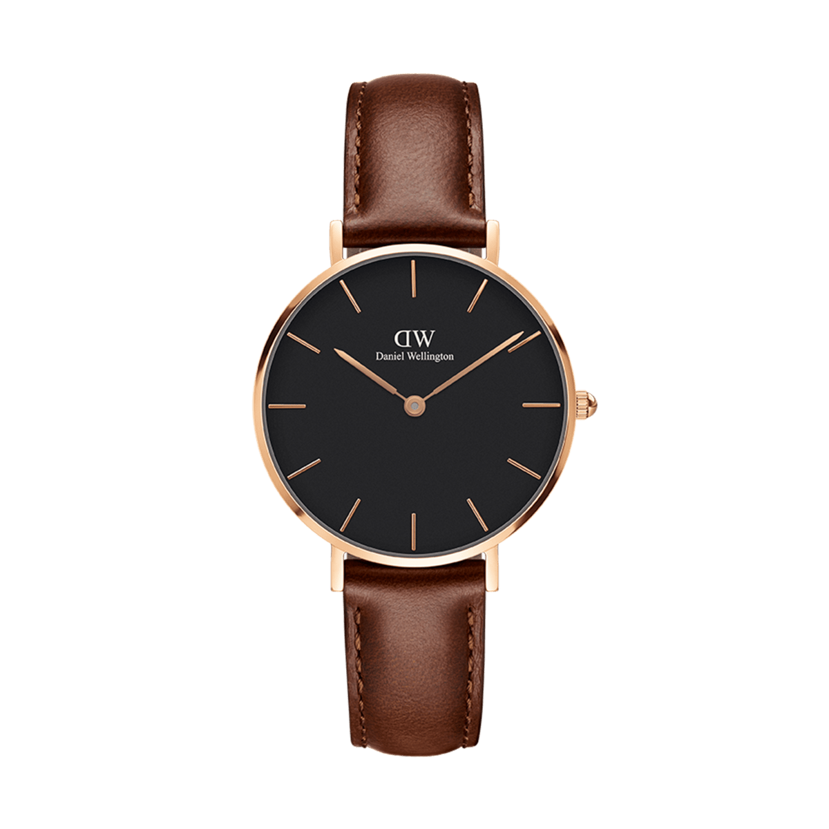 Daniel Wellington Petite St Mawes Black Dial Brown Leather Strap Watch For Women - DW00100169