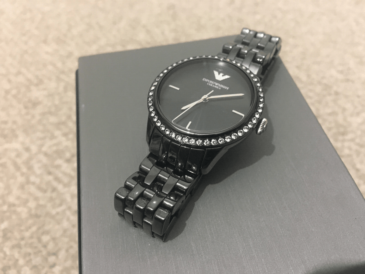 Emporio Armani Ceramica Crystals Black Dial Black Ceramic Strap Watch For Women - AR1478