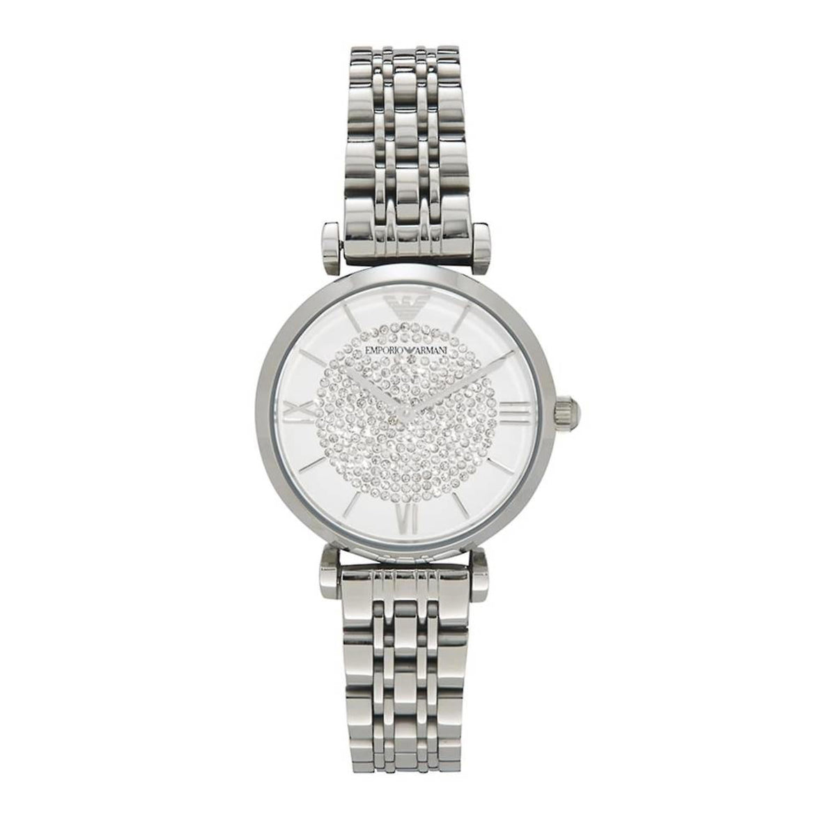 Emporio Armani Gianni T Bar White Crystal Pave Dial Silver Stainless Steel Strap Watch For Women - AR1925