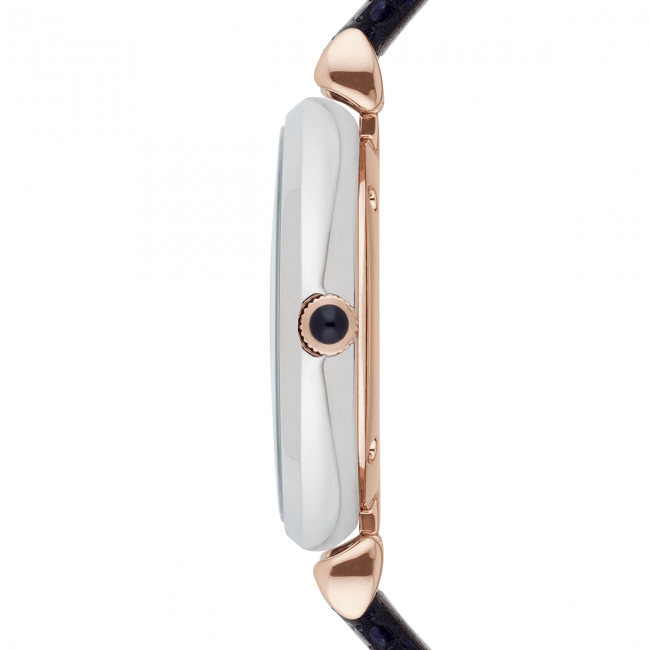 Emporio Armani Gianni T Bar Analog Blue Dial Black Leather Strap Watch For Women - AR1989