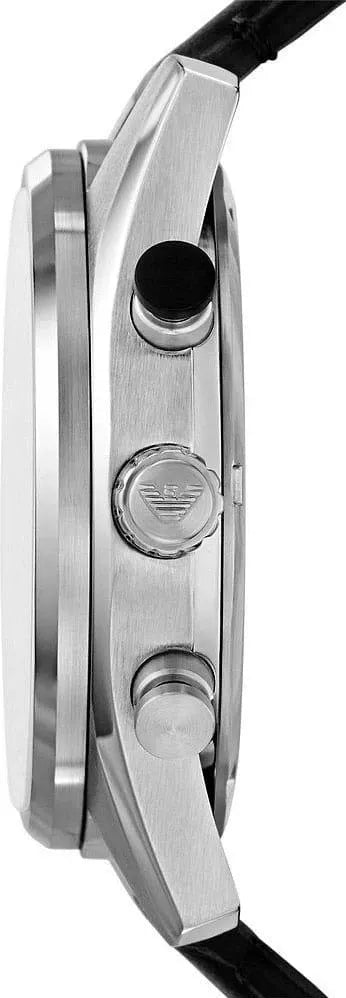Elevate your style with the Emporio Armani Racer Chronograph, featuring a sleek black dial complemented by a black leather strap. This men's watch combines precise chronograph functionality with elegant design, perfect for both everyday wear and special occasions. Durable and comfortable, it ensures you stay punctual with sophistication and a modern edge.
