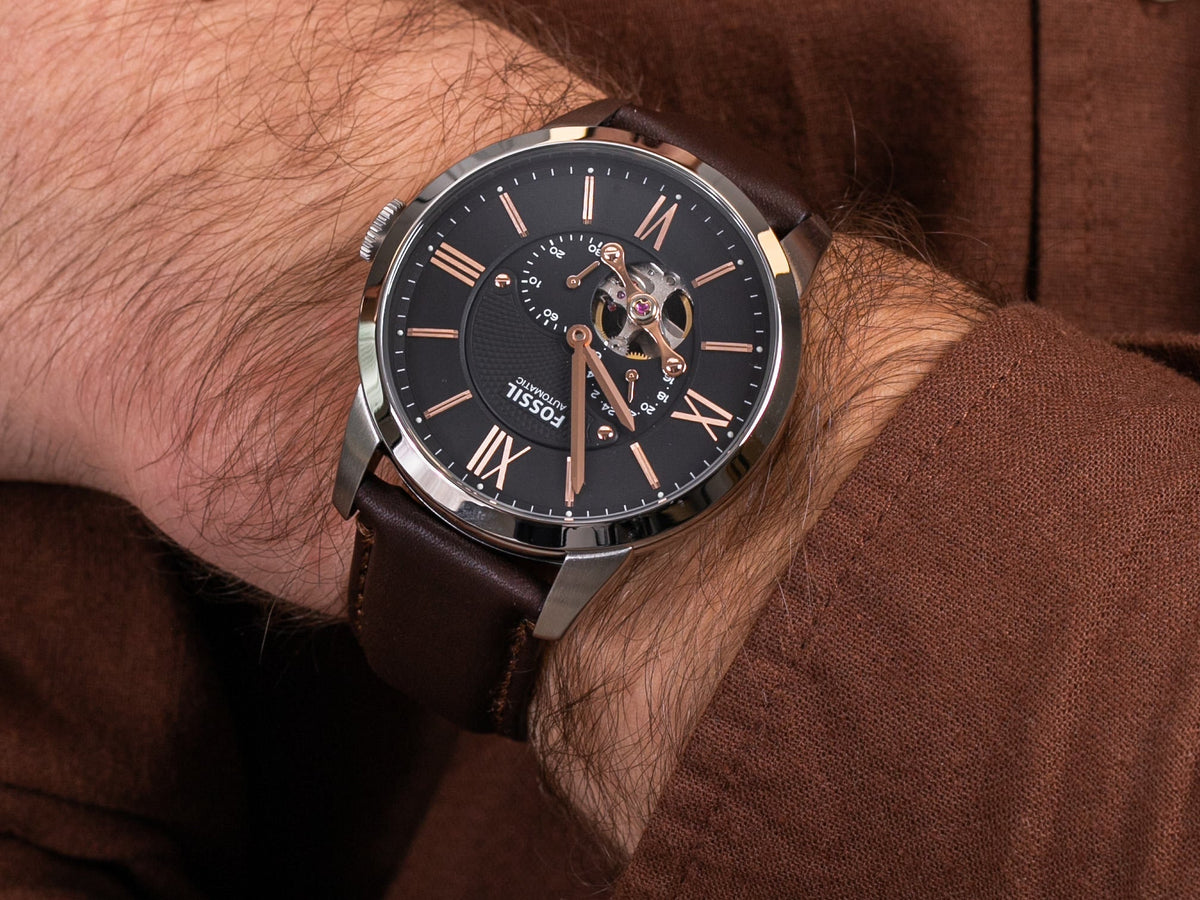 Fossil Townsman Automatic Black Dial Brown Leather Strap Watch for Men - ME3061