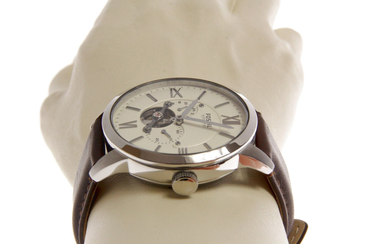Fossil Townsman Automatic White Dial Brown Leather Strap Watch for Men - ME3064