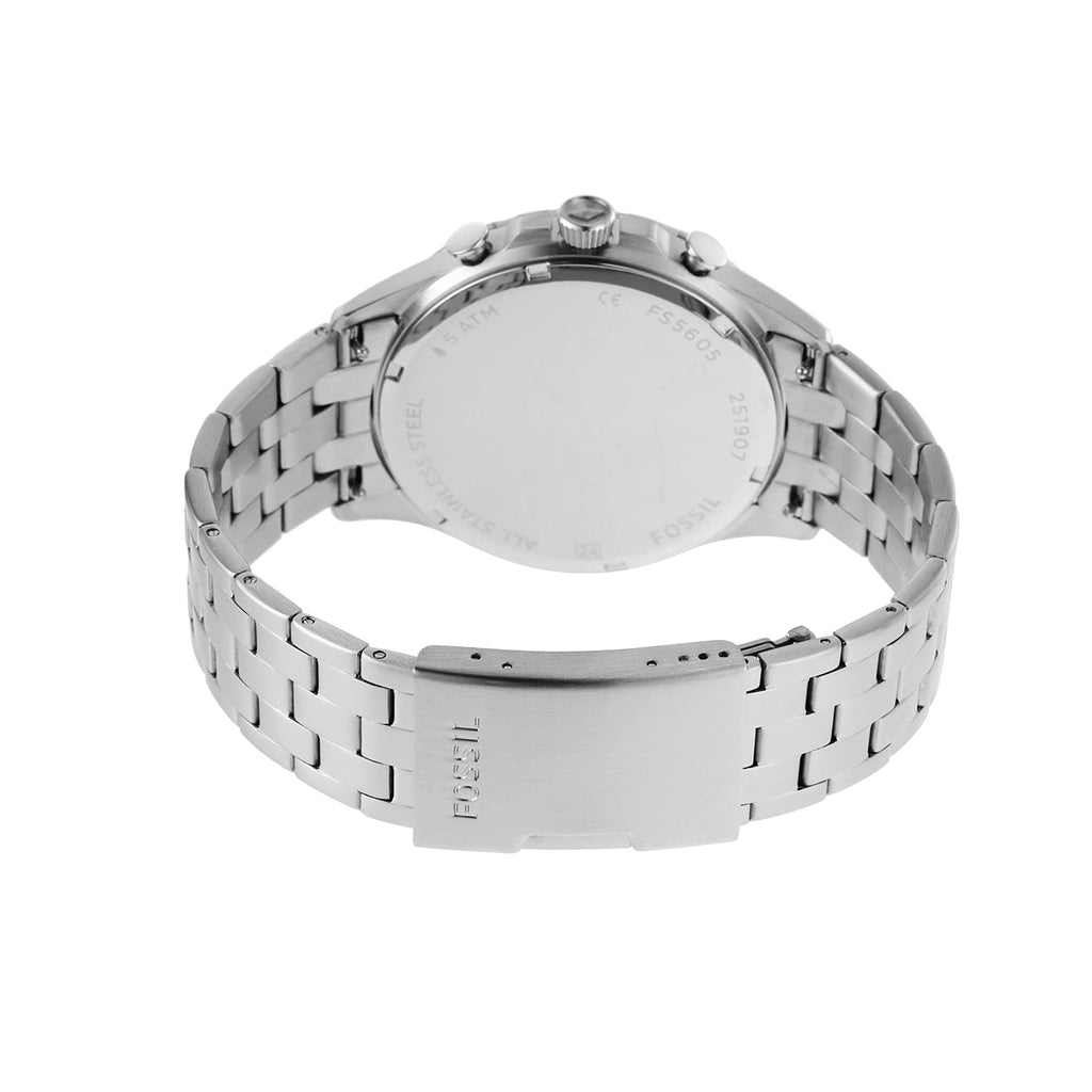 Fossil Forrester Chronograph Blue Dial Silver Steel Strap Watch for Men - FS5605