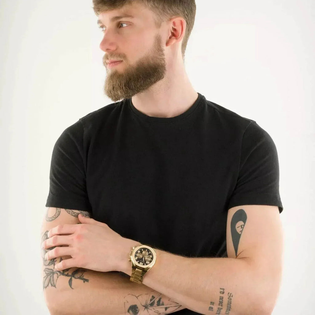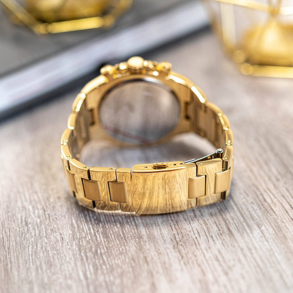 Guess Empire Quartz Black Dial Gold Steel Strap Watch For Men - GW0489G2