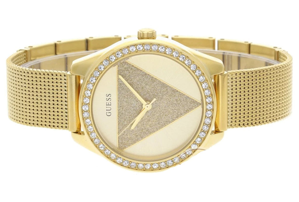 Guess Tri Glitz Quartz Diamonds Gold Dial Gold Mesh Bracelet Watch For Women - W1142L2