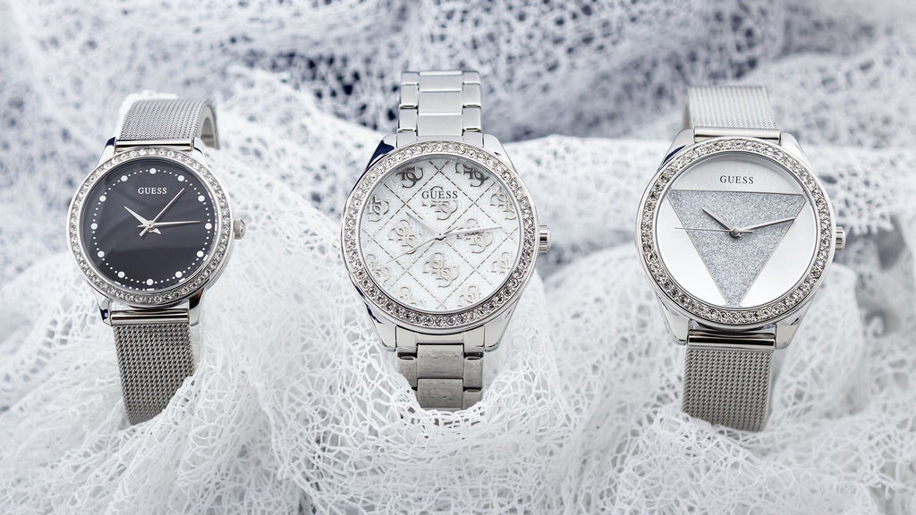 Guess Tri Glitz Quartz Silver Dial Silver Mesh Bracelet Watch For Women - W1142L1