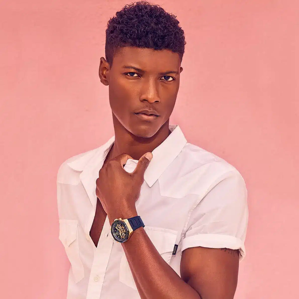 Guess Momentum Chronograph Blue Dial Blue Rubber Strap Watch for Men - GW0263G2