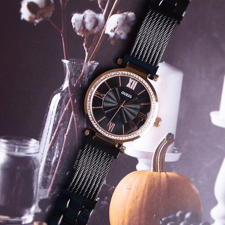 Guess Soho Diamonds Black Dial Black Mesh Bracelet Watch for Women - W0638L5