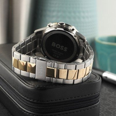 Elevate your style with the Hugo Boss Allure Chronograph, featuring a striking blue dial and a sophisticated two-tone steel strap. Designed for men who appreciate precision and elegance, this watch combines functionality with timeless appeal. Its chronograph feature ensures accurate timekeeping, while the durable steel construction offers lasting comfort and resilience. Perfect for both professional and casual settings, this timepiece adds a refined touch to any outfit. Make a confident statement with the Hugo Boss Allure Chronograph.