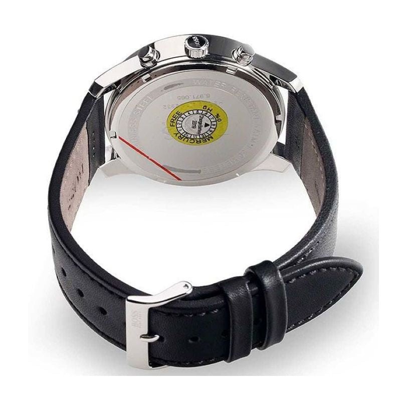 Hugo Boss Time One Chronograph Black Dial Black Leather Strap Watch for Men - 1513430