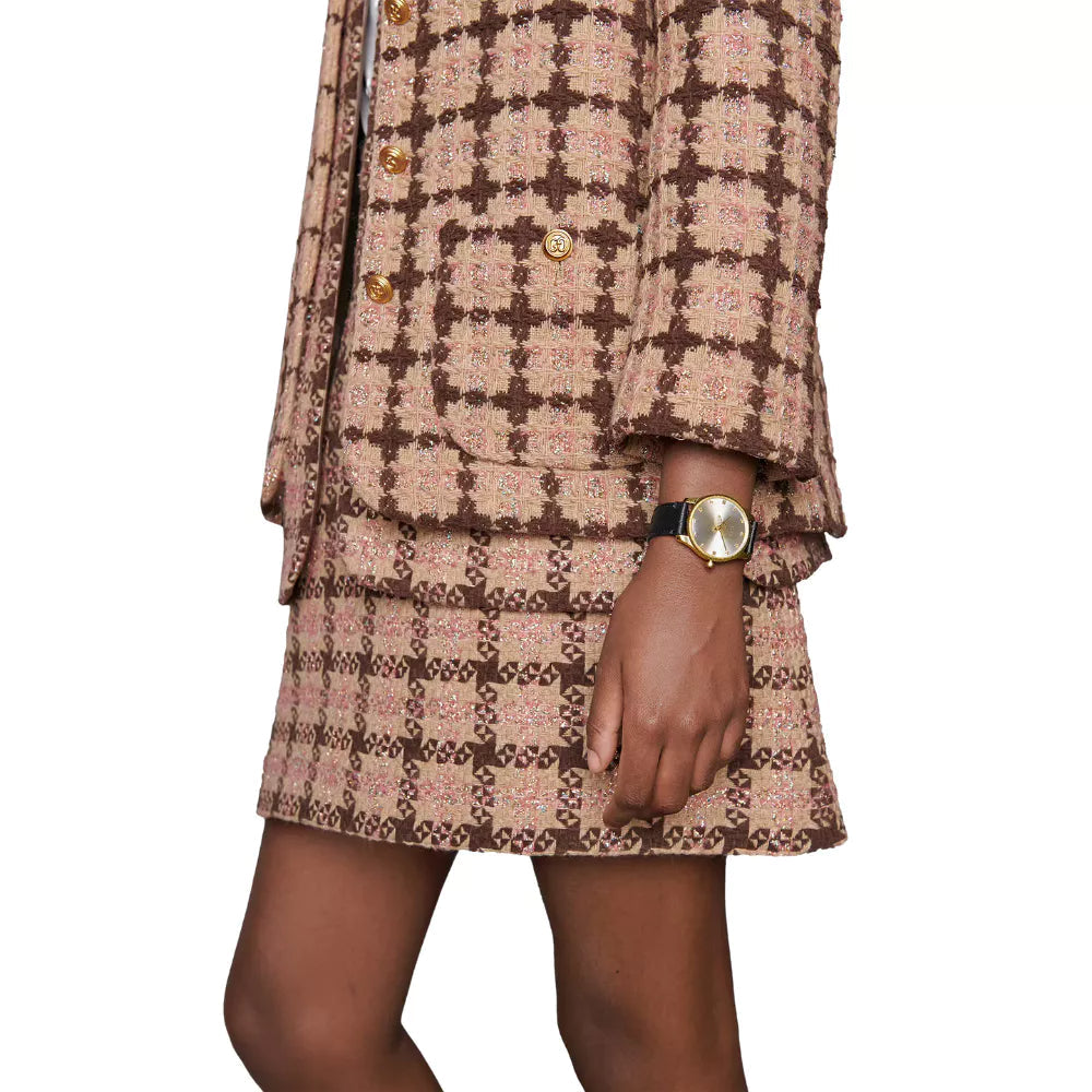 | Buckle: | Tang type buckle made of yellow gold toned steel |