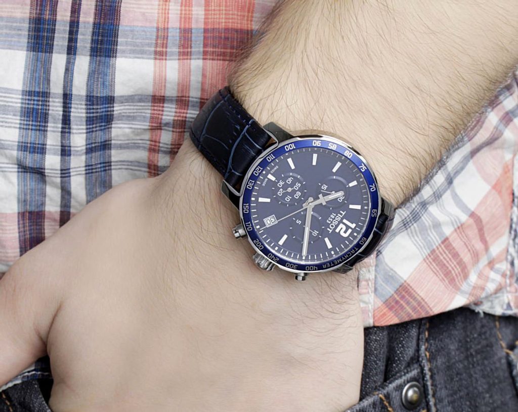 The Tissot Quickster is a watch of choice for sports enthusiasts. It has a blue leather strap with a standard buckle. Topped with a scratch-resistant sapphire crystal, the Tissot Quickster houses a Swiss-made quartz movement, guaranteeing perfect reliability.