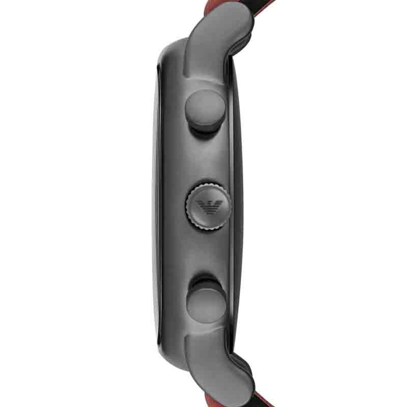 Quartz movement. Scratch resistant mineral crystal. Case size: 46 mm. Round case shape. Tang clasp. Water resistant at 50 meters / 165 feet. Functions: chronograph, date, hour, minute, second. Sports watch style. Armani Luigi Black Dial Chronograph Red Leather Men’s Watch AR1971.