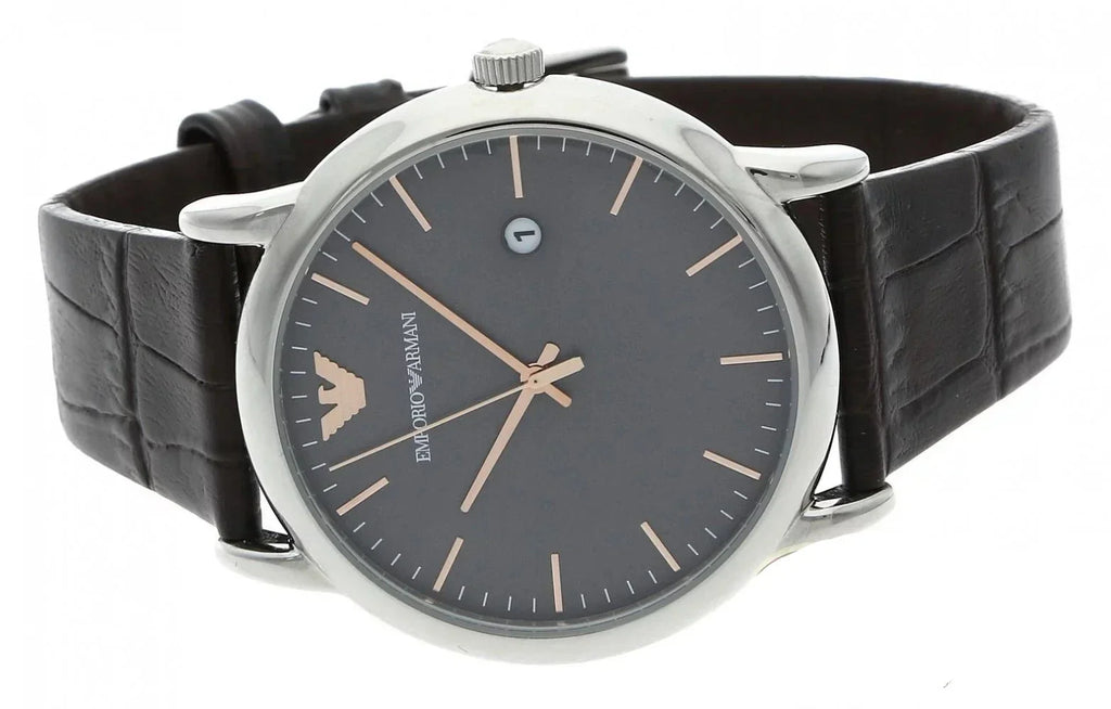 Emporio Armani Luigi Quartz Gray Dial Brown Leather Strap Watch For Men - AR1996
