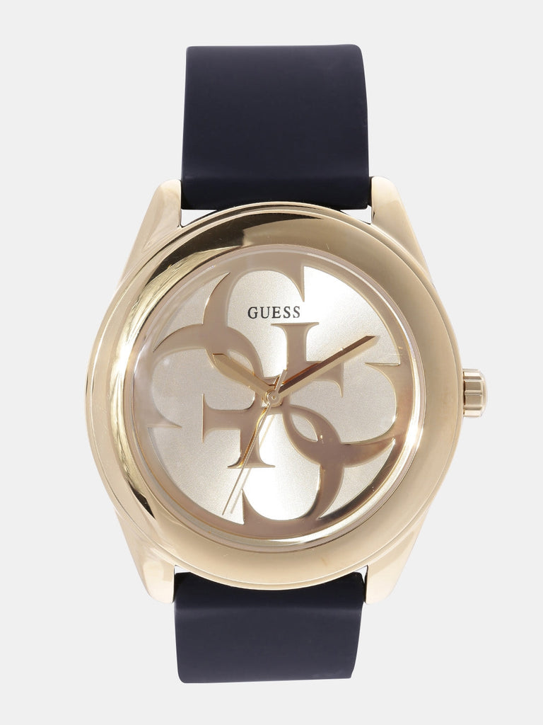 Guess G Twist Gold Dial Black Leather Strap Watch for Women - W0911L3