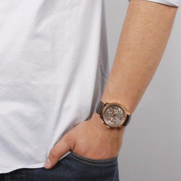The Guess Horizon Chronograph watch reflects style and elegance in its design, which makes it great for any occasion, the case of the watch is made from stainless steel, that keeps the watch from rusting, while the band is made out of genuine leather that maintains its look over time, plus, it contains additional three separate dials that display time in hours, minutes and seconds, and its water resistant up to 50 meters, so you can feel comfortable wearing it every day.