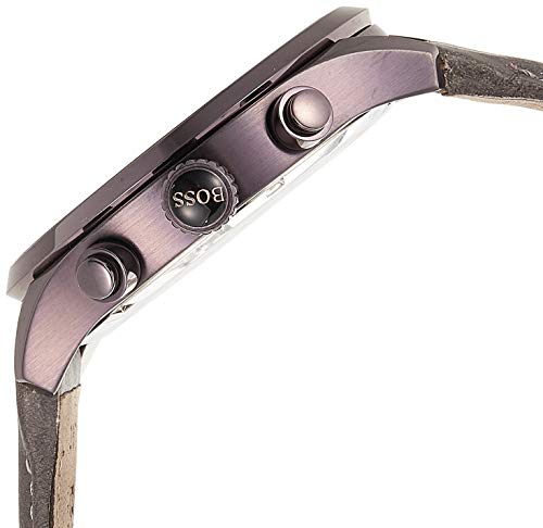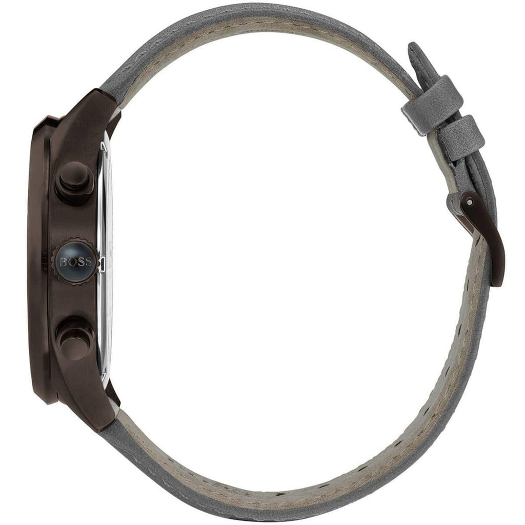 Hugo Boss Grand Prix Silver Dial Grey Leather Strap Watch for Men - 1513603
