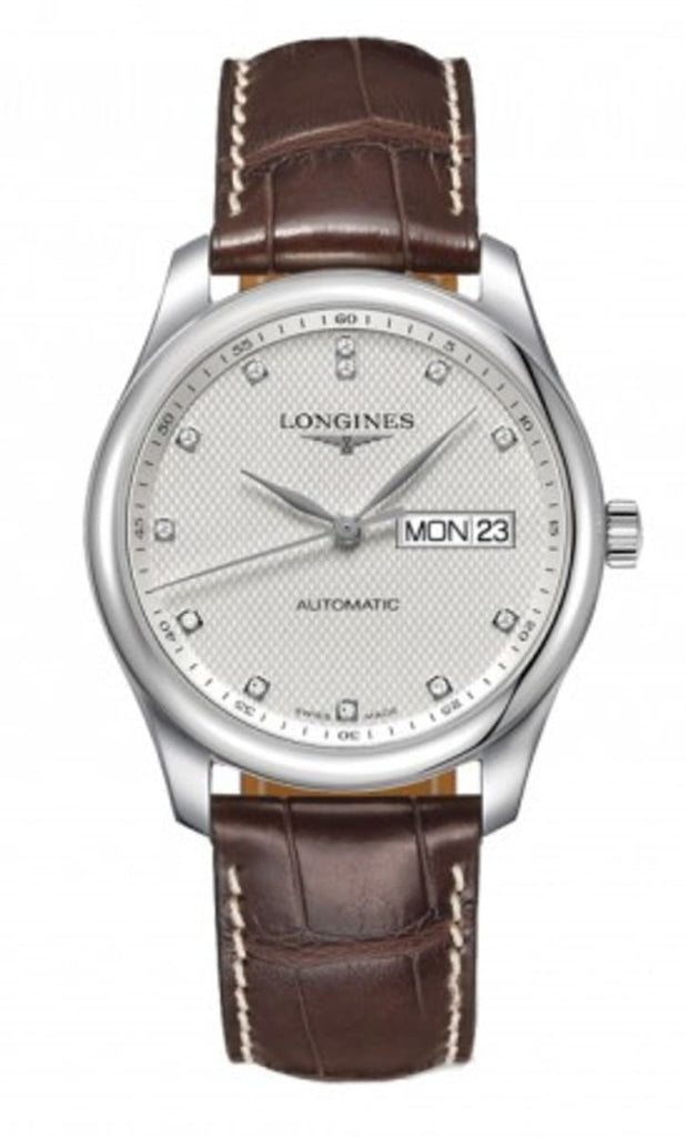 Longines Master Collection Automatic 38.5mm Silver Diamond Dial Brown Leather Strap Watch for Men - L2.755.4.77.3