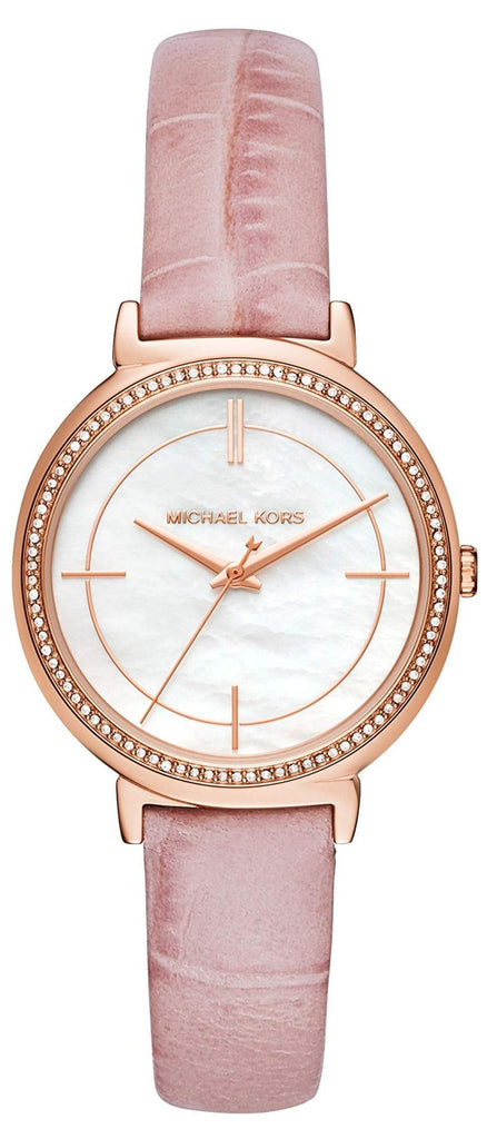 Michael Kors Cinthia Mother of Pearl Dial Pink Leather Strap Watch for Women - MK2663