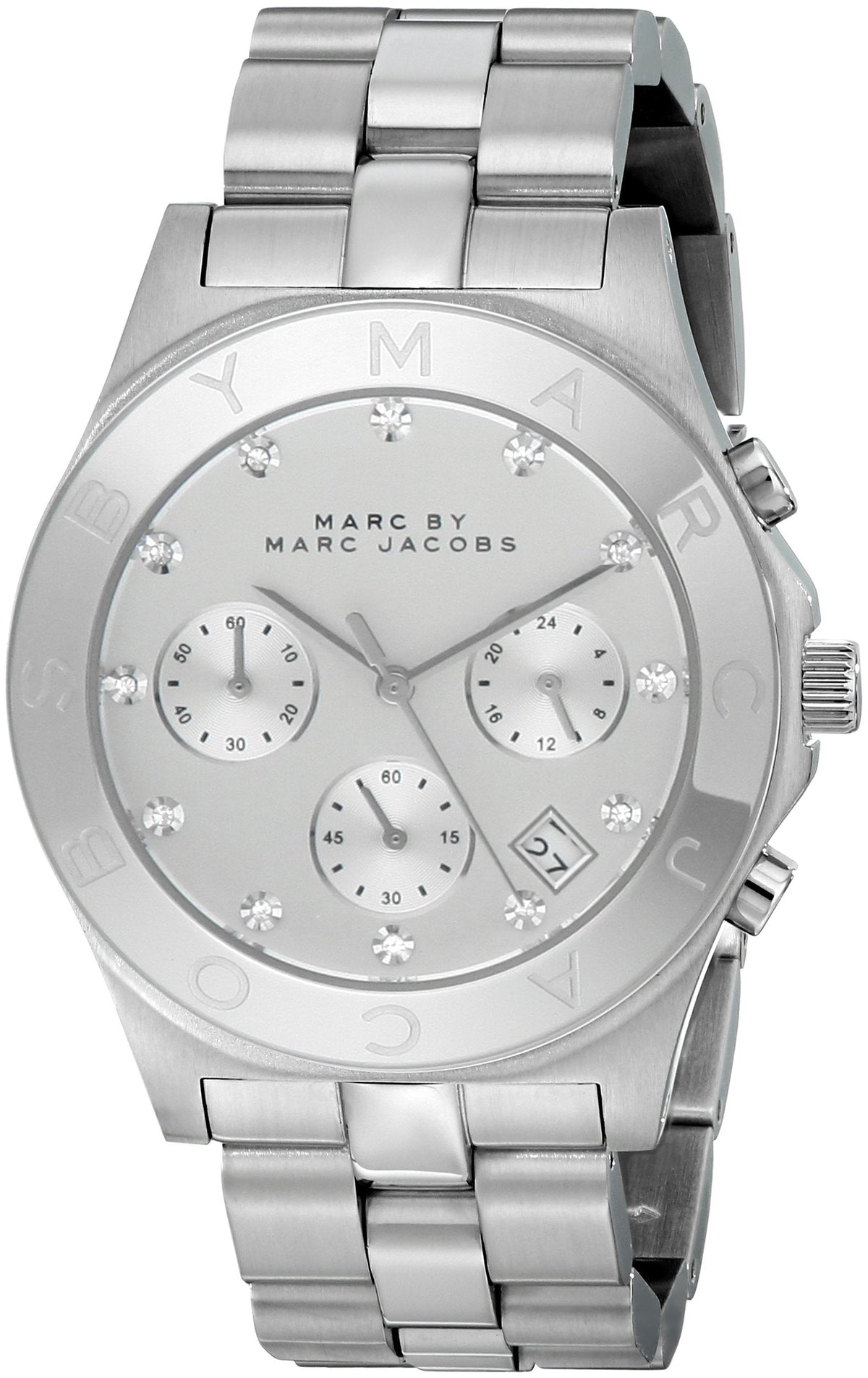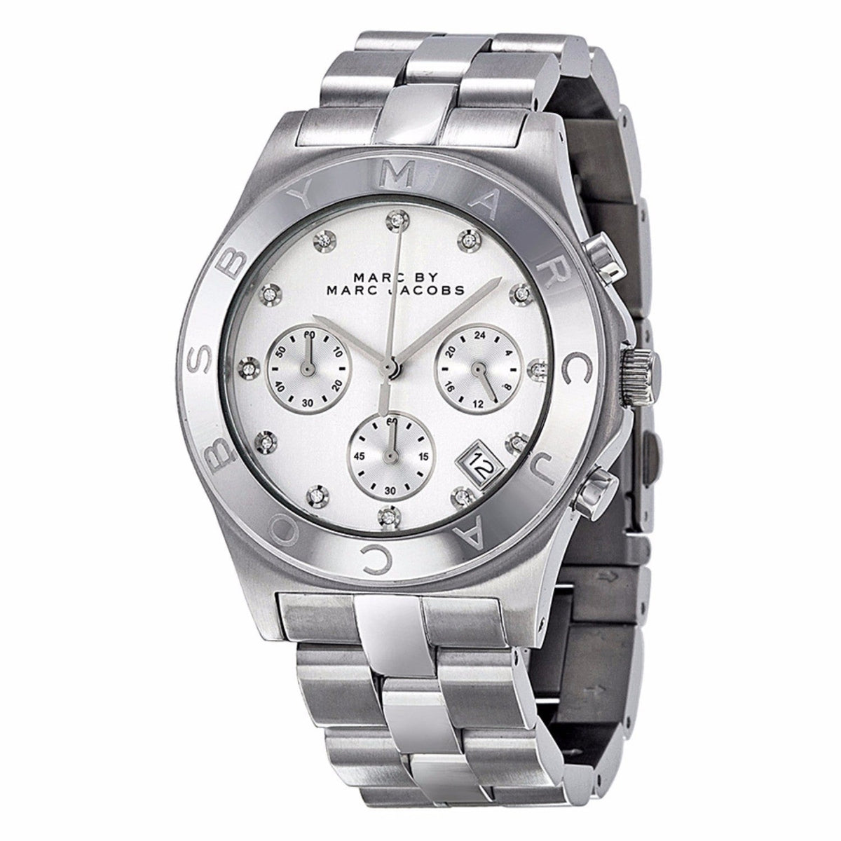 A beautiful Ladies Marc By Marc Jacobs MBM3100 Blade watch in stainless steel. This stylish wrist watch has a silver dial and comes with a date function, chronograph and sparkling stone hour markers. It is powered by a quality quartz movement and fastens with a stainless steel bracelet. Presented in a signature Marc By Marc Jacobs watch gift box.