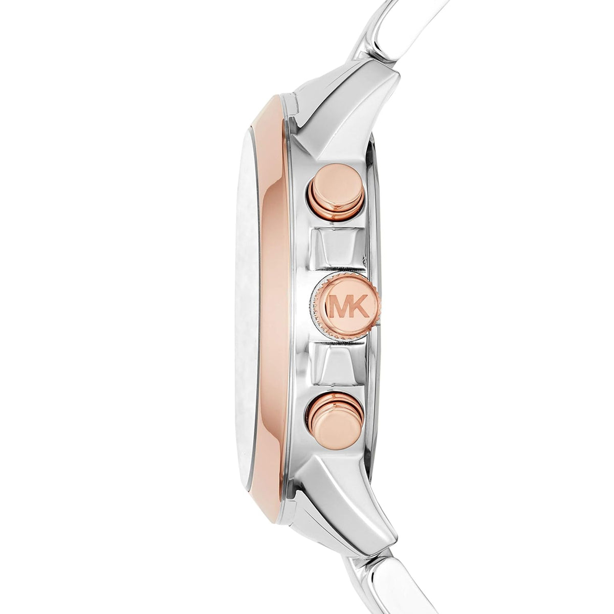 This Michael Kors Bradshaw watch exudes jet-set style with a mixed metal tones, rose gold-tone and silver tone bracelet. A blue sunray dial completes the look.