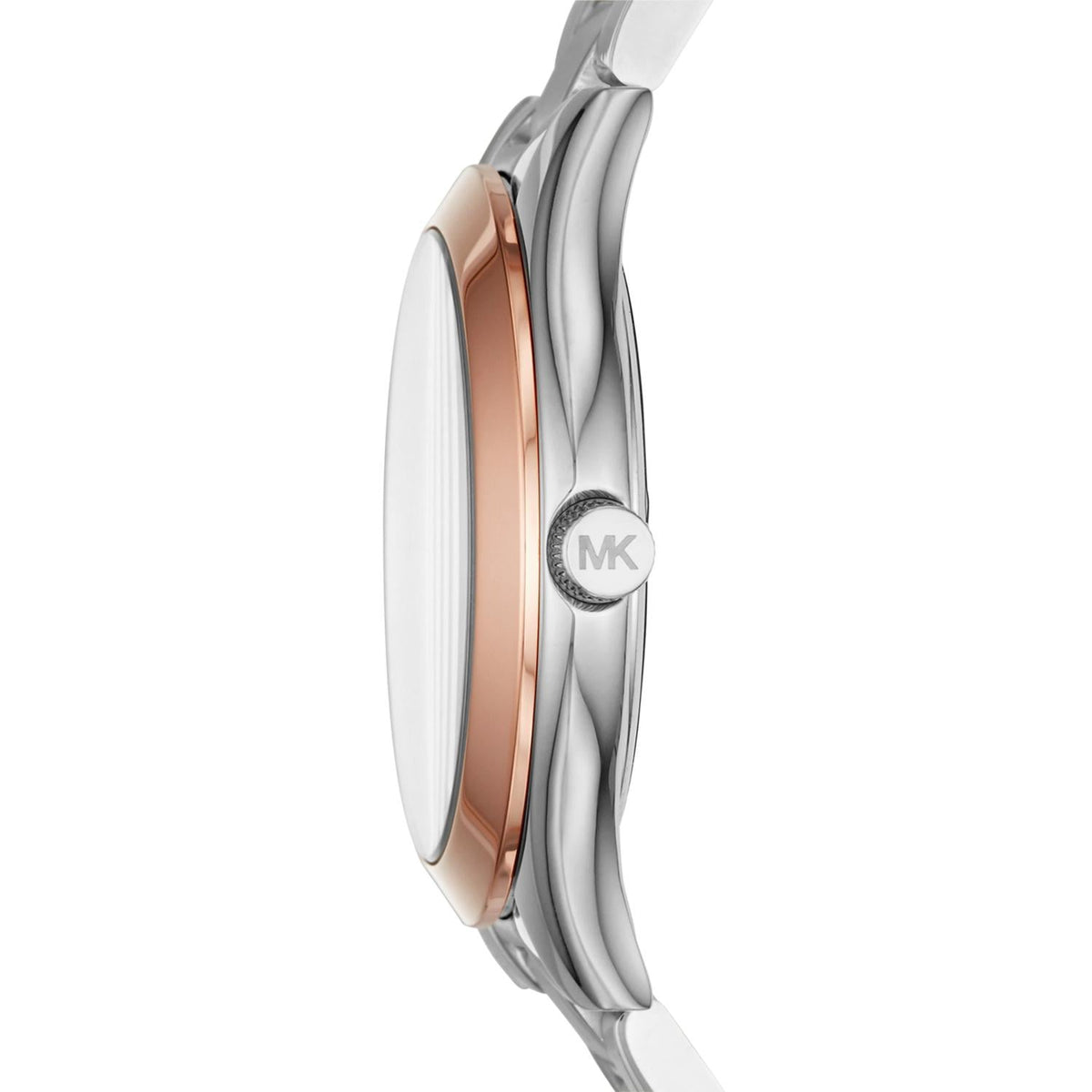 Sleek and elegant, the Michael Kors Mini Slim Runway adds a touch of sophistication to any outfit. Boasting a silver dial and steel strap, this women's watch exudes timeless style. Stay on time and in style with MK3514, designed for the modern woman.