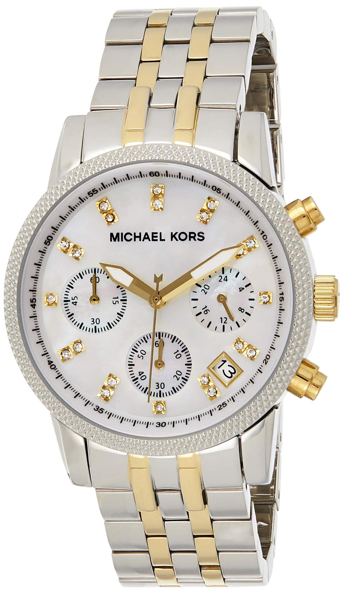Michael Kors Ritz Chronograph White Dial Two Tone Steel Strap Watch for Women - MK5057