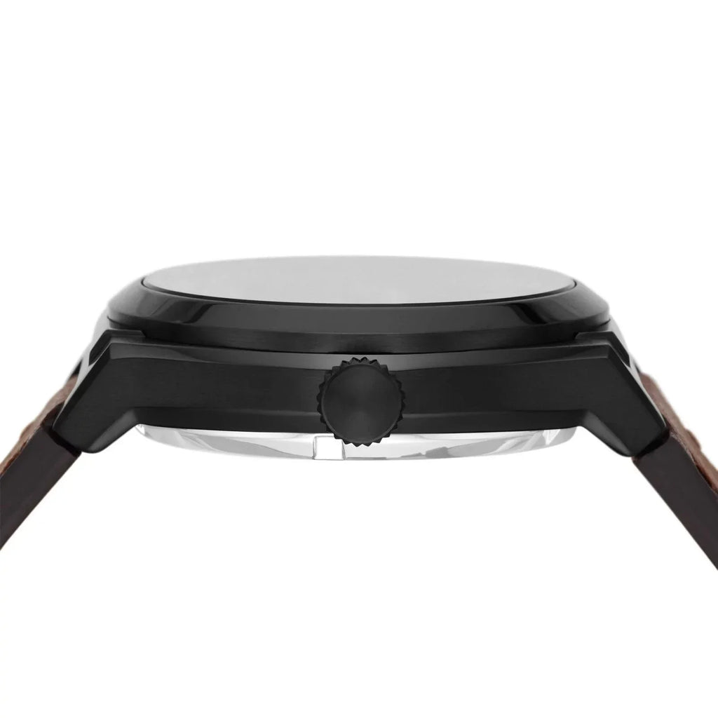 Elevate your style with the Fossil Everett Automatic Dark Brown LiteHide™ Men's Watch. Featuring a sleek design, this watch offers timeless sophistication. With its automatic movement, you'll never have to worry about changing batteries. The LiteHide™ material adds a touch of luxury to this must-have timepiece.