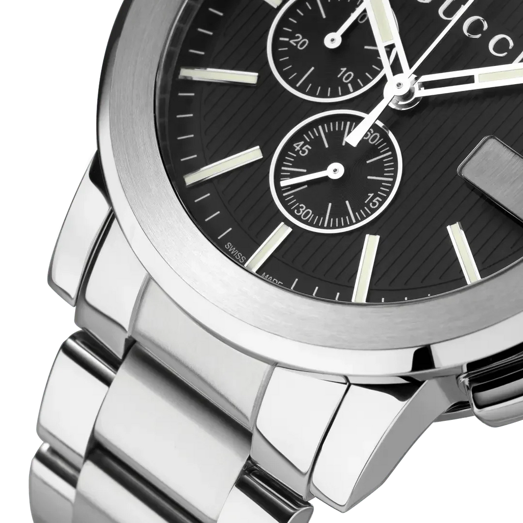 Gucci G Chrono Black Dial Silver Steel Strap Watch For Men - YA101204