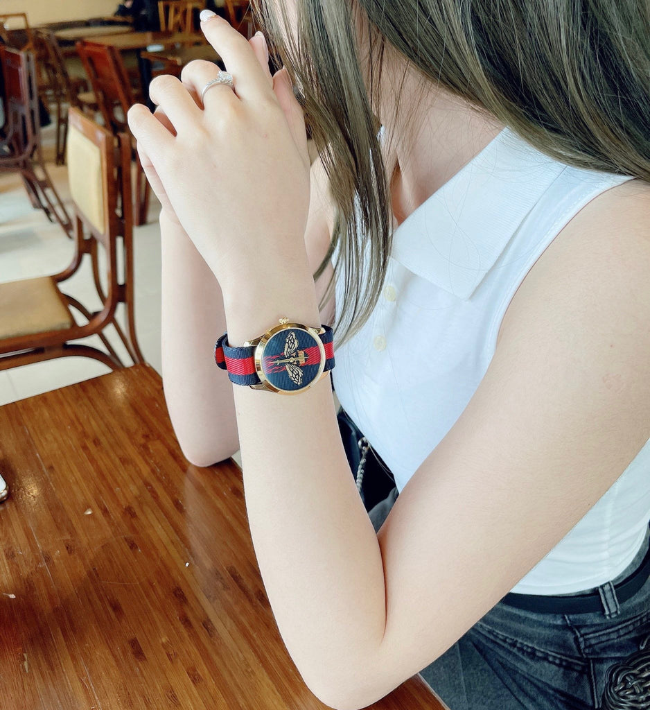 Gucci G Timeless Bee Red & Blue Dial Red Two Tone Nylon Strap Watch For Men - YA1264061