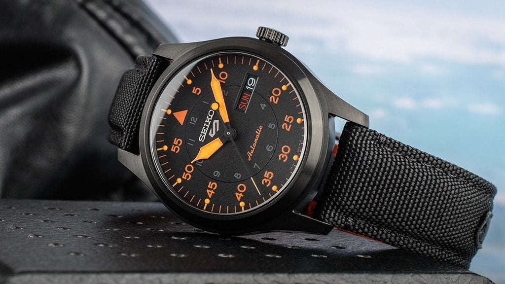 Introducing a ‘Flieger’ style into the Seiko 5 Sports collection – a military style originally created for pilots and navigators, the layout of Flieger watches had to be clear and easy to read quickly, as well as being robust and reliable.