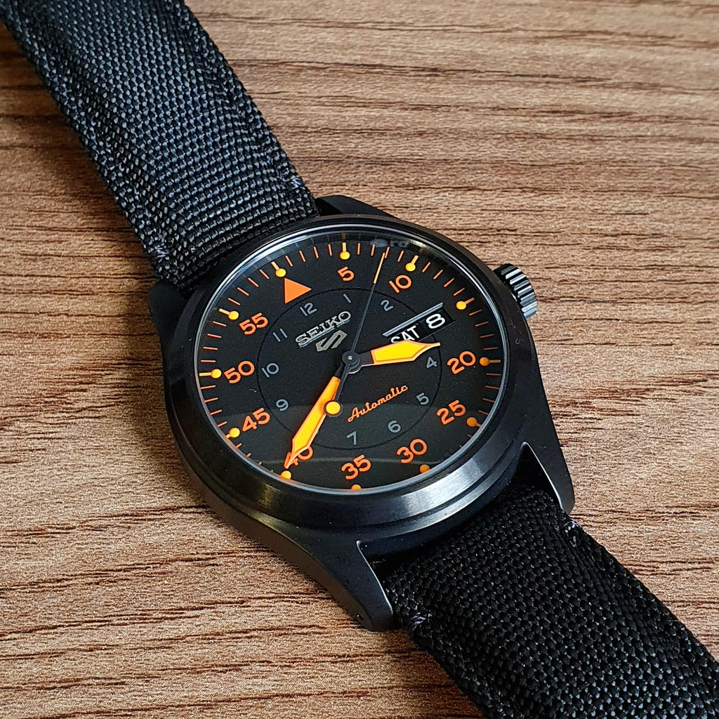 Seiko 5 Sports Flieger Pilot Automatic Black Dial Black Nylon Strap Watch for Men - SRPH33K1