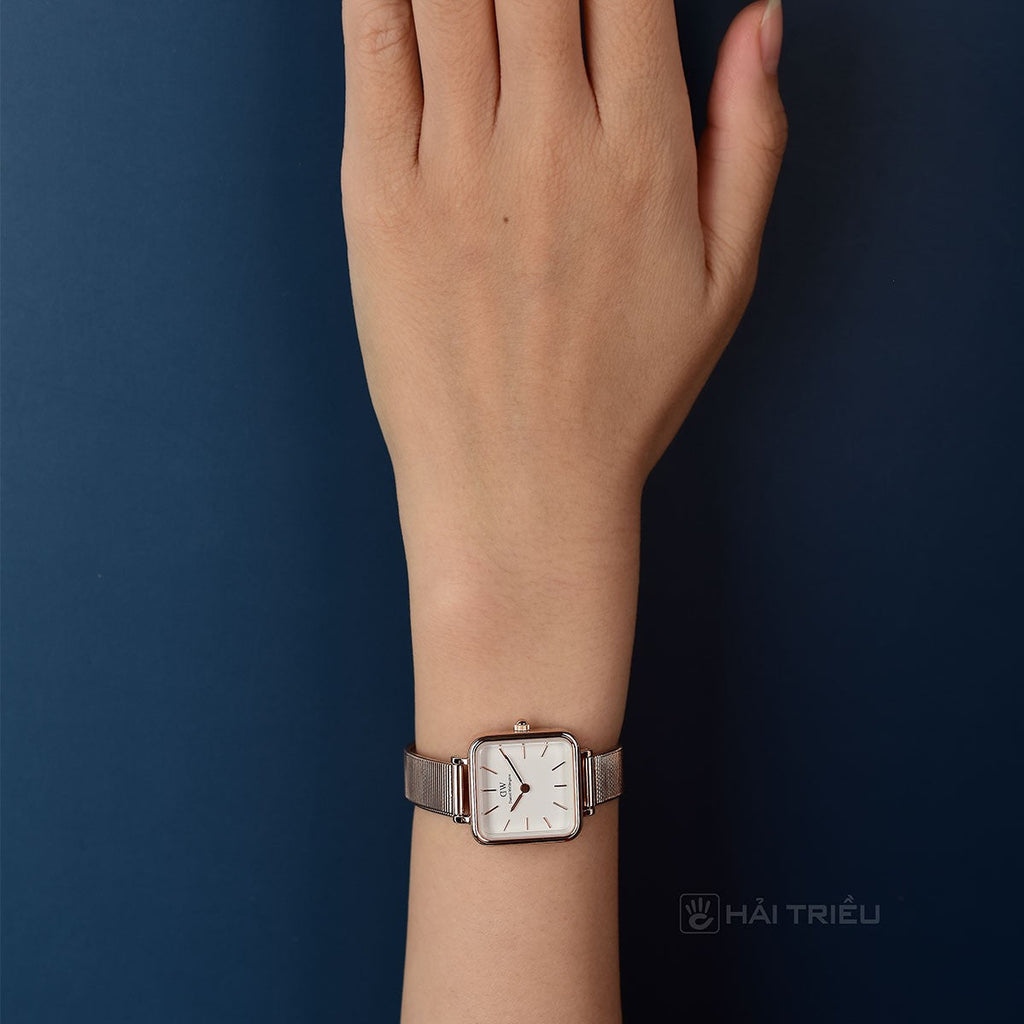 Daniel Wellington Quadro Studio White Dial Rose Gold Mesh Strap Watch For Women - DW00100517