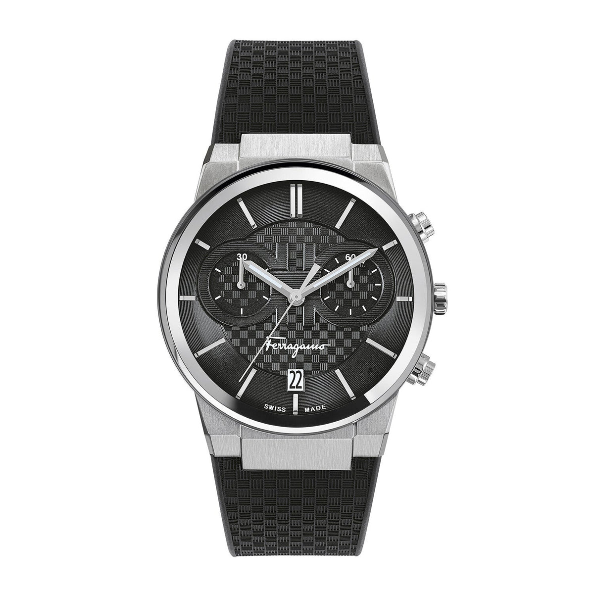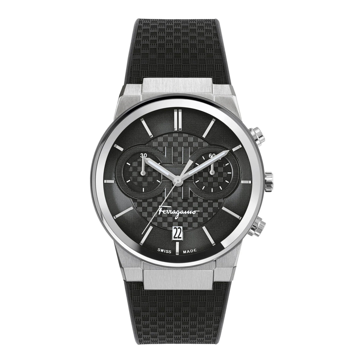 Salvatore Ferragamo Sapphire Chrono Black Dial Black Silicone Strap Watch for Men - SFME00121