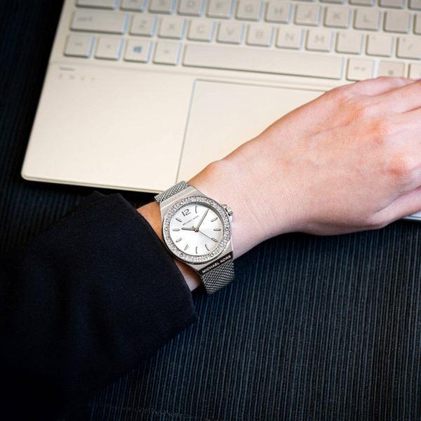 Elevate your daily style with the Michael Kors Lennox Silver-Tone Women's Watch. The refined silver-tone design exudes timeless elegance, while the intricate details of the watch showcase craftsmanship at its finest. With this watch, you can elevate any outfit and make a statement wherever you go.