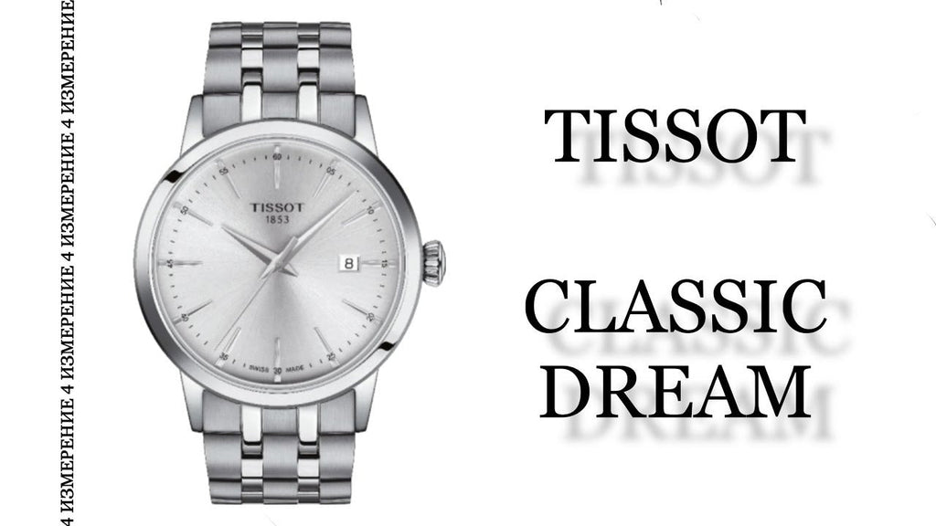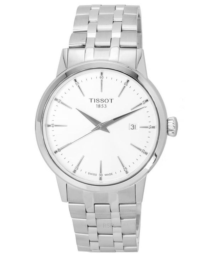 Brand New Authentic Tissot Classic Dream Silver Dial Stainless Steel Men's Fashion Watch Model T129.410.11.031.00. Brushed and Polished Stainless Steel case with Brushed and Polished Stainless Steel Bracelet watch band. Brushed and Polished Stainless Steel Deployment with Push Button clasp. Smooth bezel. Dial description: Polished Silver Tone Hands and Stick Hour Markers with Minute Markers Around the Outer Rim and the Date at 3 o'clock on a Silver dial. Swiss Quartz movement.