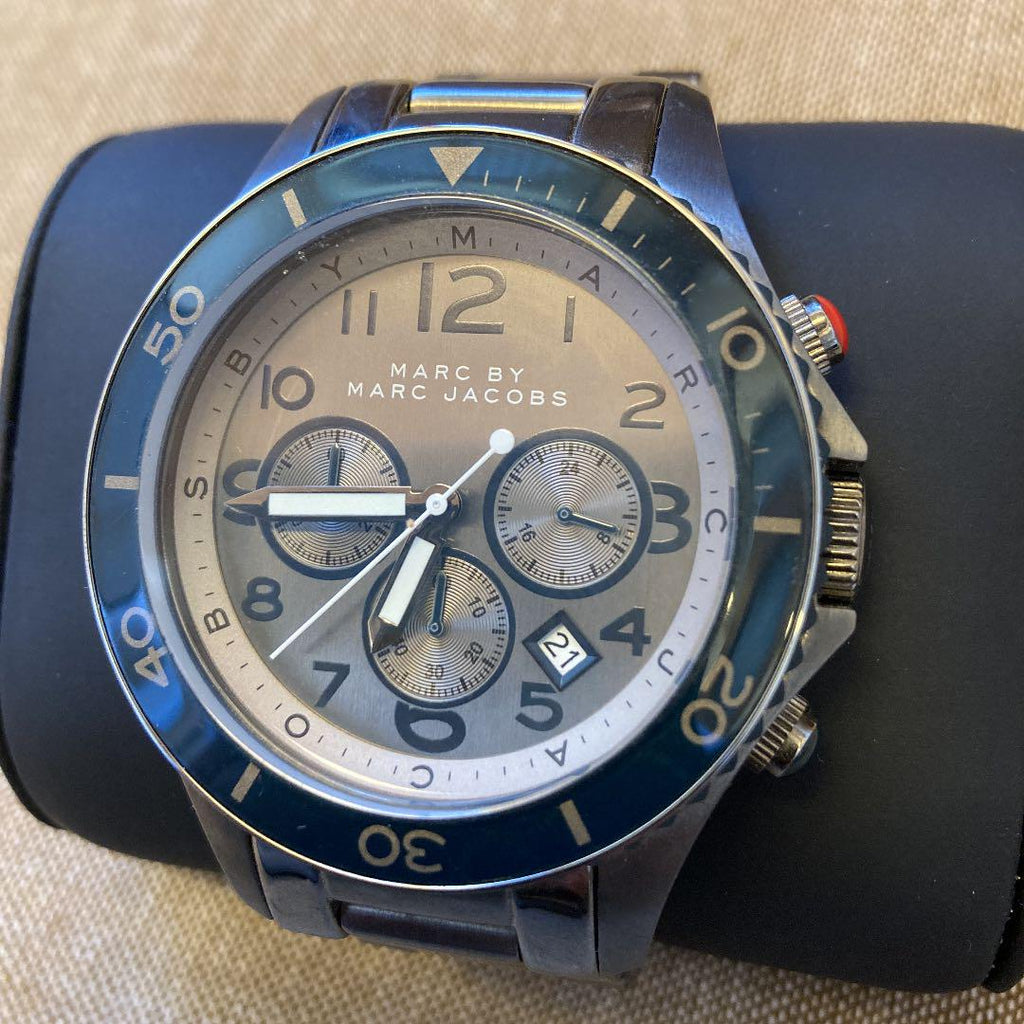 Discover the effortless style and precision timekeeping of the Marc Jacobs Rock Chronograph Watch. With a stunning silver dial, durable steel strap, and reliable chronograph functionality, this watch is the perfect combination of style and functionality. Elevate your look with this must-have timepiece.