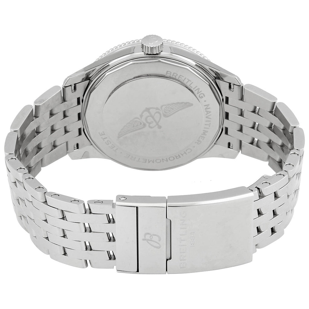 This captivating 41mm Navitimer model is presented in a stainless steel case with a co-ordinating bracelet and a beautifully engraved caseback.