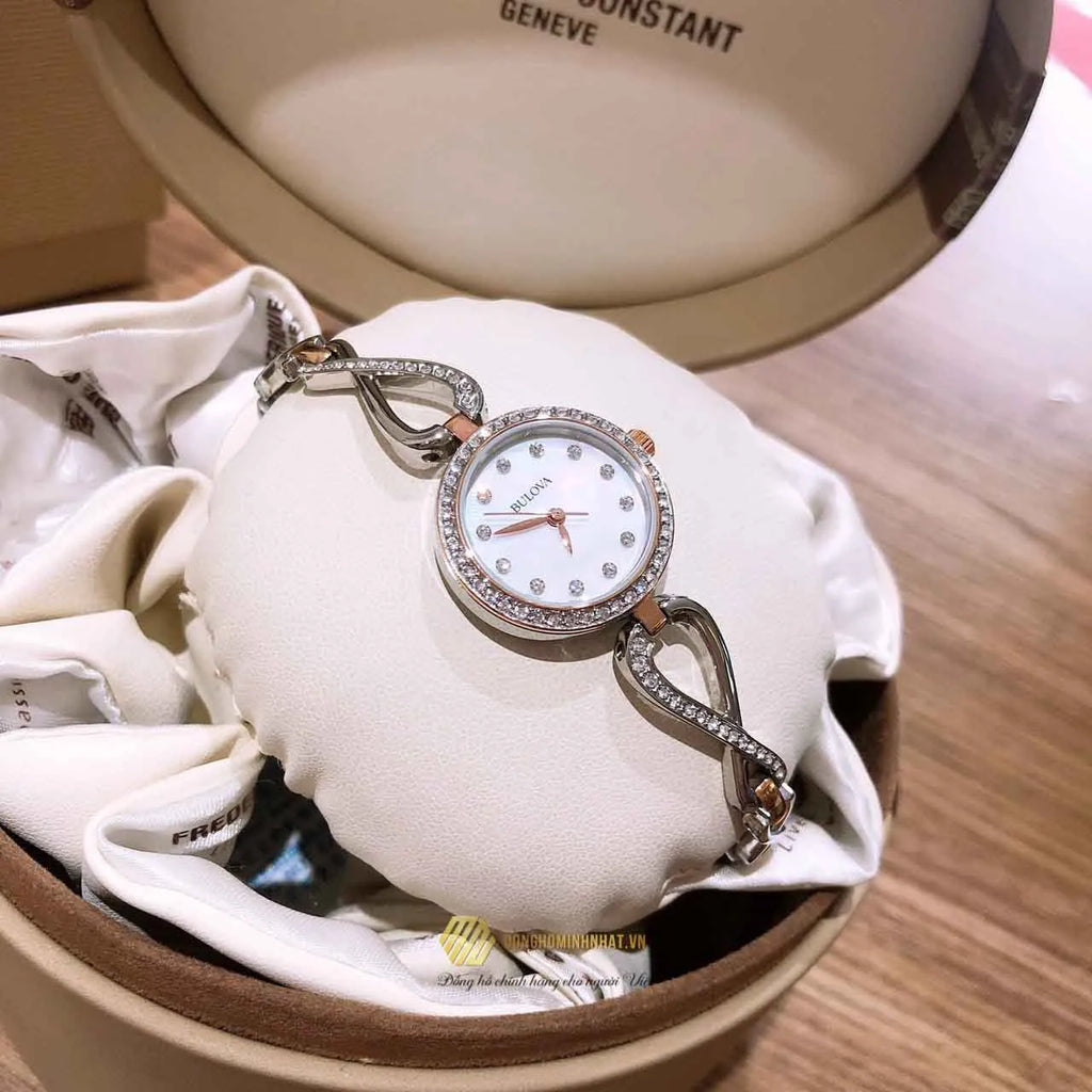 Bulova Crystals Mother of Pearl Dial Two Tone Steel Strap Watch for Women - 98X108