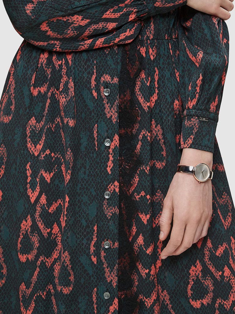 Rose gold-tone stainless steel case with a two-tone (rose gold-tone and silver stainless steel bracelet. Fixed rose gold-tone bezel. Silver dial with rose gold-tone hands. No markers. Dial Type: Analog. Quartz movement. Scratch resistant mineral crystal. Pull / push crown. Solid case back. Round case shape. Case size: 30 mm. Case thickness: 8 mm. Band width: 14 mm. Foldover clasp. Water resistant at 30 meters / 100 feet. Functions: hour, minute. Seduce Series. Casual watch style. Watch label: Swiss Made. Calvin Klein Seduce Quartz Silver Dial Ladies Watch K4E2N61Y.