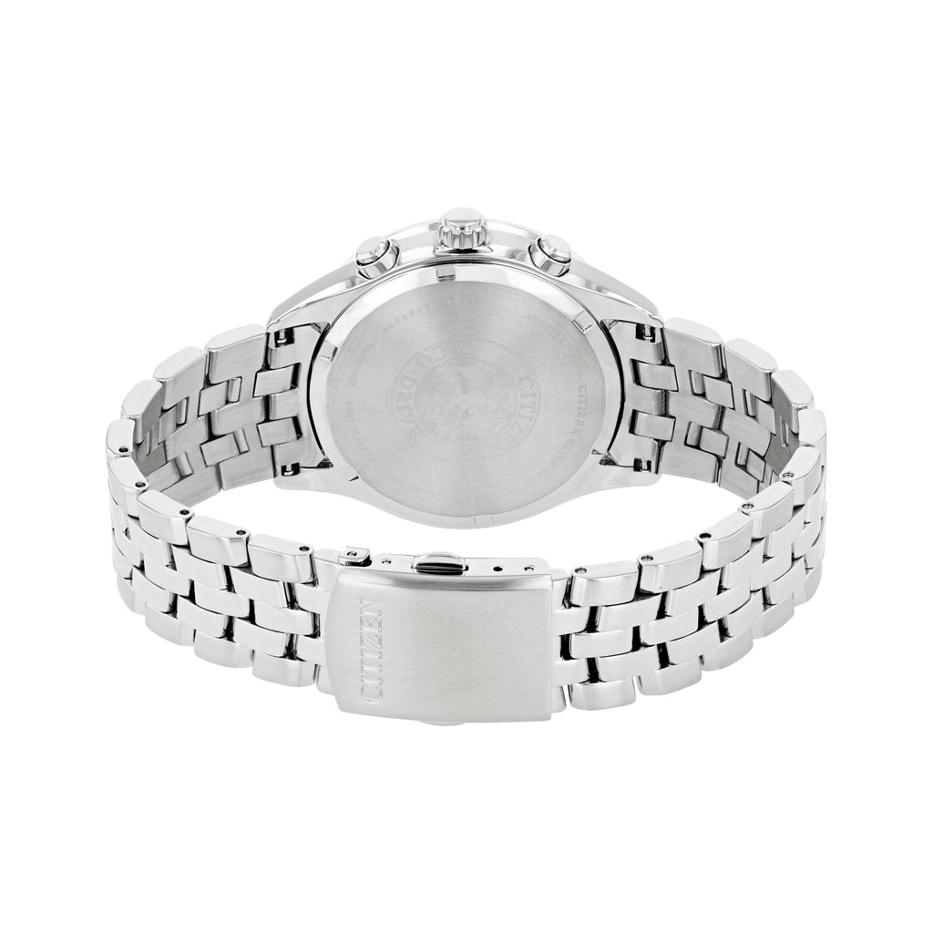Citizen Eco Drive Chronograph Black Dial Silver Steel Strap Watch For Men - AT2140-55E