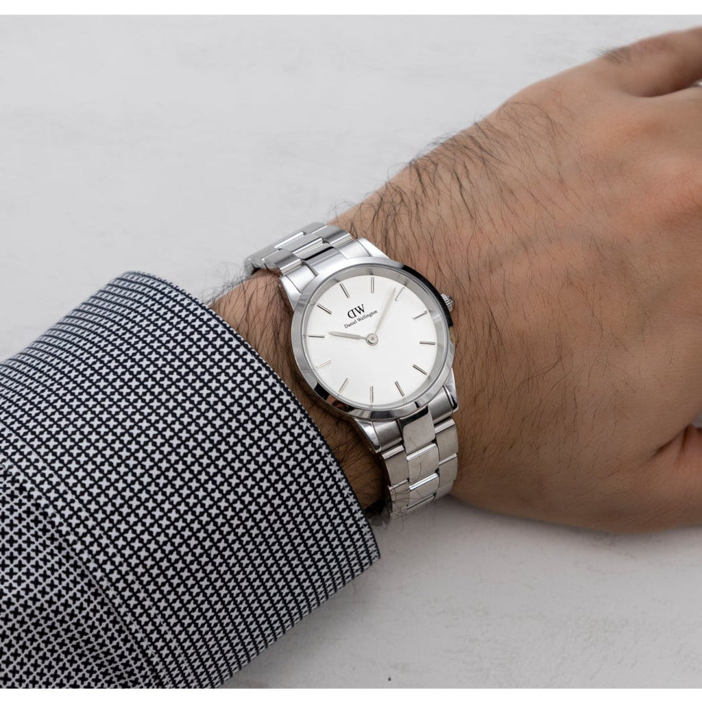 Elevate your style with the Daniel Wellington Iconic Link Watch for Women. This premium timepiece features a stylish silver steel strap and a crisp white dial, exuding elegance and sophistication. Perfect for any occasion, this watch will add a touch of luxury to your everyday look.