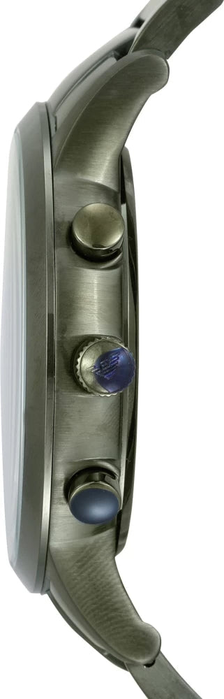 With this watch, be prepared to get noticed amidst the crowd. This men's analog watch by Emporio Armani features a polished green IP case, gray chronograph dial, three sub-dials with silver-tone stick indexes, three silver hands, and stainless steel with a three-link bracelet, which further compli ments the look of the watch. Clock With Quartz Movement With Chronograph.