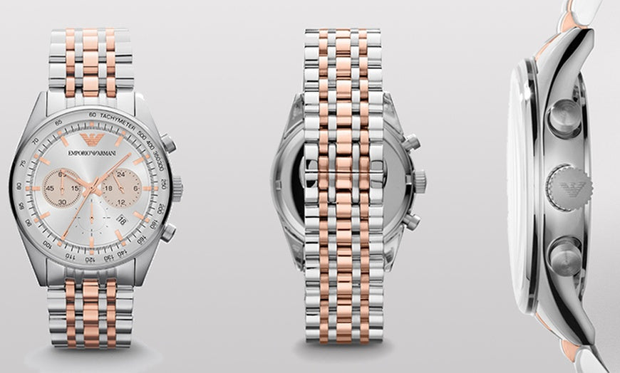 Emporio Armani Sportivo Chronograph Silver Dial Two Tone Steel Strap Watch For Men - AR5999